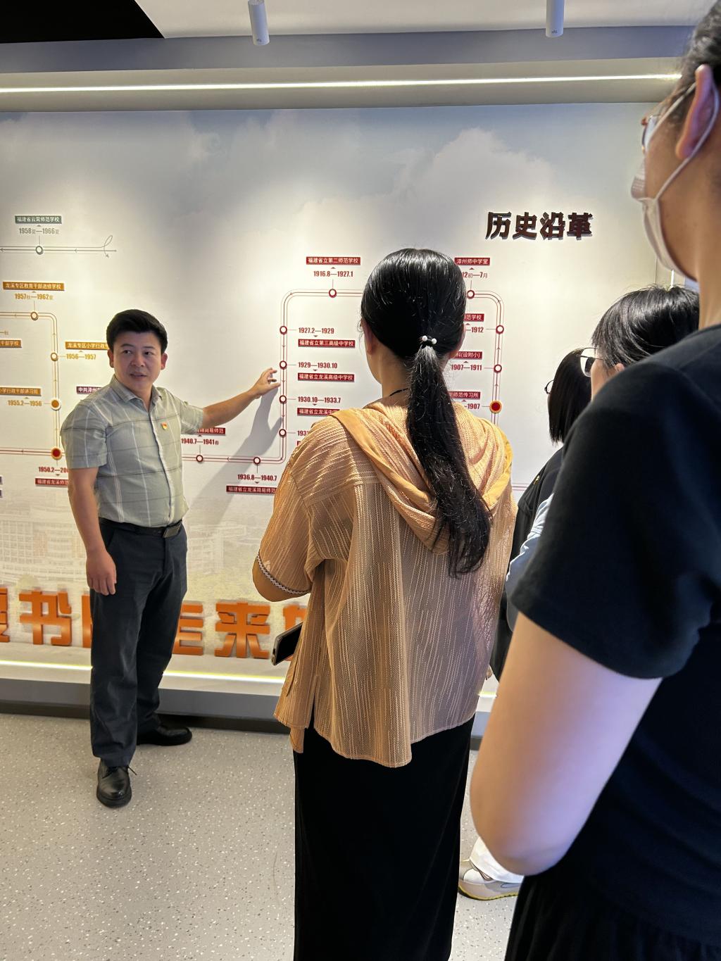 校史馆内,在党支部书记杨志雄的详细讲解和介绍下,全体党员同志依次参观了各个展区。从泛黄的老照片到珍贵的实物档案,从建校初期的艰辛创业到不同历史时期的蓬勃发展,一幅幅图片、一件件展品、一段段文字,生动再现了学校与国家民族同呼吸、共命运,扎根漳州大地办教育的辉煌历史。大家驻足观看,仔细聆听,深刻感受着学校深厚的历史积淀、文化底蕴和丰硕的办学成果。